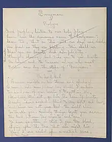 | Characters | Everyman, Lord God, Death, Faith, Good Deeds, Devil, Mammon, Paramour, War, Workman |