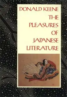 The Pleasures of Japanese Literature is a short nonfiction work by Donald Keene, which deals with Japanese aesthetics and literature; it is intended to be less academic and encyclopedic than his other works dealing with Japanese literature such as Seeds in the Heart, but better as an introduction for students and laymen. This aim is unsurprising, as Keene notes in his introduction that "This book originated as five lectures, three delivered at the New York Public Library in the spring of 1986, the fourth at the University of California at Los Angeles in 1986, and the last at the Metropolitan Museum of Art in New York in 1987.....The lectures - and this book - were intended for a general audience..." (from the first page of the Preface).