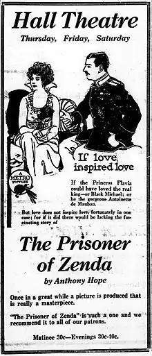 - ↑ "Prisoner of Zenda". Variety. New York: Variety, Inc. August 4, 1922. p. 34.