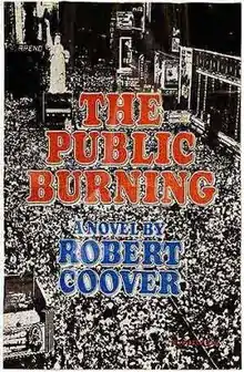 The Public Burning, Robert Coover's third novel, was published in 1977. It is an account of the events leading to the execution of Julius and Ethel Rosenberg. An uncharacteristically human caricature of Richard Nixon serves as protagonist and narrator for the primary continuity.