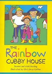 The Rainbow Cubby House is the third book in the Learn to Include series, written by Brenna Harding and her lesbian mother Vicki (who could not find any readers featuring same-sex families to donate to her daughter's school). It is for beginner readers or for reading aloud.