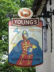 The Rattlebone Inn is a public house in Sherston, Wiltshire. It has been listed Grade II on the National Heritage List for England since December 1986.[1] The inn is named for Rattlebone, who fought for Edmund Ironside against King Cnut at the battle of Sherston in 1016.[1] A major fire occurred at the pub in March 2014.[2] The pub is popular with members of the nearby Beaufort Hunt.[3]