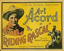 The Ridin' Rascal is a 1926 American silent Western film directed by Clifford Smith based upon the novel Mavericks by William MacLeod Raine. The film stars Art Acord, Olive Hasbrouck, and Buck Connors.[1][2]