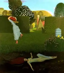 The River Bank (Ophelia) is a 1980 painting by the English painter David Inshaw. The subject is from William Shakespeare's play Hamlet. It was made for a joint exhibition of the Brotherhood of Ruralists, where each artist made his own interpretation of the subject. Since 2015 it belongs to the Victoria Art Gallery in Bath, Somerset.