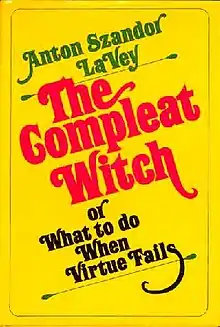 The book was first published as The Compleat Witch, or What to Do When Virtue Fails, in 1971 by Dodd, Mead & Company.[3] The first paperback edition was released by Lancer Books in 1972. It was republished by Feral House in 1989 with an introduction by Zeena LaVey, wherein it was retitled The Satanic Witch; and again in 2003 with a new introduction by Peggy Nadramia and afterword by Blanche Barton. The book concludes with a bibliography of over 170 books on topics of psychology, anthropology, sociology, biology and volumes on sexuality and body language.[2] The publisher describes the book as "...undiluted Gypsy lore regarding the forbidden knowledge of seduction and manipulation."[4]