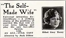 The Self-Made Wife is a 1923 American silent melodrama film, directed by John Francis Dillon. It stars Ethel Grey Terry, Crauford Kent, and Virginia Ainsworth, and was released on July 8, 1923. It was written by Albert G. Kenyon based upon the short story "The Self-Made Wife" by Elizabeth Alexander.[2]