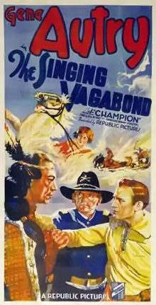 The Singing Vagabond is a 1935 American Western film directed by Carl Pierson and starring Gene Autry, Ann Rutherford, and Smiley Burnette. Written by Oliver Drake and Betty Burbridge, the film is about a cowboy who rides to the rescue when badguys kidnap a beautiful woman.[1]