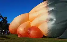 Much of the public criticism has been focused on the five breasts which hang from each side of the balloon, with a Twitter user calling it "terrifyingly nipply".[16][17][18] The director of the Canberra Museum and Gallery wrote an opinion article praising The Skywhale, arguing that the strength of the design "arises from how it concentrates the wonder, awe and mystery we experience in nature, with an urgent insistence on social engagement".[19] The Canberra Times' art critic Kerry-Anne Cousins complimented the boldness of the design, and stated that "I think it's a mark of the sophistication of Canberra that we can have this kind of debate".[15] In response to the criticism of the balloon's design, Piccinini stated that it wasn't intended to be sexual and the breasts represent how female whales feed their calves. She also believed that The Skywhale is likely to win greater support once Canberrans see it in person.[2][14] Piccinini was hurt by the criticism of the artwork in Australia, and in 2017 believed that it would be "almost impossible" to attract funding to fly it in the country again.[20] In 2019 The Canberra Times reported that The Skywhale had attracted more publicity than any other element of Canberra's centenary celebrations.[21]