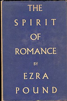 The Spirit of Romance is a 1910 book of literary criticism by the poet Ezra Pound. It is based on lectures he delivered at the Regent Street Polytechnic in London between 1908 and 1909 and deals with a variety of European literatures. As with Pound's later, unfinished poem The Cantos, the book follows "a pattern, at once historical and atemporal, of cultural beginnings and rebeginnings".[1]