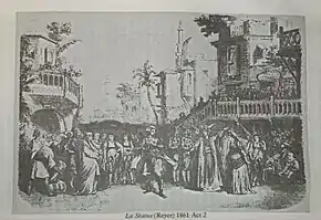 La statue (The Statue) is an opera in three acts and five tableaux by Ernest Reyer to the libretto by Michel Carré and Jules Barbier based on tales from One Thousand and One Nights and La statue merveilleuse, an 1810 carnival play (pièce foraine) by Alain-René Lesage and Jacques-Philippe d'Orneval.