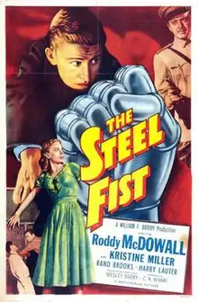 The Steel Fist is a 1952 American drama film directed by Wesley Barry and written by C.K. Kivari. The film stars Roddy McDowall, Kristine Miller, Harry Lauter, Rand Brooks, Byron Foulger and Kate Drain Lawson. The film was released on January 6, 1952 by Monogram Pictures.[1][2][3]