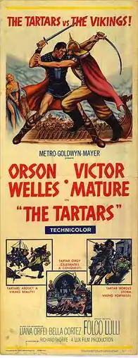 The Tartars/I Tartari is a 1961 Italian-Yugoslavian epic historical Technicolor film directed by Richard Thorpe and starring Victor Mature and Orson Welles.[2] It is one of the sword-and-sandal genre films made in Italy in the 1950s and early 1960s.