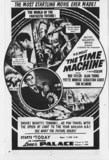The Time Machine (also marketed as H. G. Wells' The Time Machine) is a 1960 American period post-apocalyptic science fiction film based on the 1895 novella of the same name by H. G. Wells. It was produced and directed by George Pal, and stars Rod Taylor, Yvette Mimieux, and Alan Young. The story is set in Victorian England and follows an inventor who constructs a machine that enables him to travel into the distant future. Once there, he discovers that mankind's descendants have divided into two species, the passive, childlike, and vegetarian Eloi and the underground-dwelling Morlocks, who feed on the Eloi.