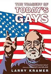 The Tragedy of Today's Gays is a 2005 book by gay activist Larry Kramer, in which the author prints a speech he delivered at New York City's Cooper Union Hall on November 21, 2004.[1] In the speech, Kramer urges gay men and lesbians to take action, unite as a community, and embrace safer lifestyles. The speech led to a protest, two days later, against American General Peter Pace, Chairman of the Joint Chiefs of Staff, who had previously called homosexuality "immoral."[2]