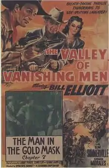 The Valley of Vanishing Men is a 1942 American Western film serial. It was the 20th of 57 released by Columbia Pictures. Directed by Spencer Gordon Bennet, it stars Bill Elliott, Slim Summerville, and Carmen Morales.