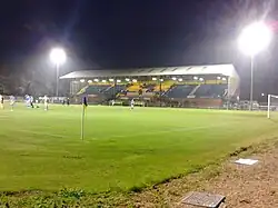 Canvas screens were erected around the ground in 1892 to prevent people watching matches without paying.[3] In 1893 a match was played against Wisbech Town under electric lights.[4] A stand was built in 1896, although it was demolished in 1905, replaced by a 500-seat wooden grandstand built at a cost of £250.[5]