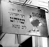 A Yiddish butcher shop sign in the Ward, circa 1910