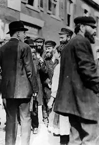 The development of the neighbourhood caused much consternation in Toronto, including anti-Semitic riots and government clearance efforts. In 1909, 8 acres (0.032 km2) of The Ward were demolished to build the Toronto General Hospital. The neighbourhood also began to change in character. As the Jewish immigrants became more settled, they moved westwards to the Kensington Market area and the Ward increasingly became a centre for Italian immigrants, who were then arriving in great numbers.[8] Son to Italian immigrants, Johnny Lombardi was born in The Ward in 1915, and went on to found one of the first multilingual radio stations in Canada, CHIN in 1966.[9][10] By the 1920s, most Italians had moved west of Bathurst Street and the College-Clinton area had emerged as the city's major Little Italy.[11] By the Second World War, the Ward had become Toronto's first Chinatown. Central Neighbourhood House was established in 1911 as a settlement house to assist new immigrants in the Ward.