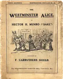 The Westminster Alice is the name of a collection of vignettes written by Hector Hugh Munro (Saki) in 1902 and published by The Westminster Gazette of London. It is a political parody of Lewis Carroll's two books, Alice's Adventures in Wonderland (1865) and Through the Looking-Glass (1871).