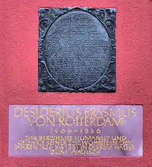 As recorded on the façade of the building, the humanist Erasmus of Rotterdam lived in the Villinger house after his escape from Basel. However, at the time of his arrival in Christmas 1529, the house was still unfinished.[14]