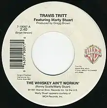 "The Whiskey Ain't Workin'" is a song recorded by American country music artists Travis Tritt and Marty Stuart. It was released in November 1991 as the third single from Tritt's album It's All About to Change. It peaked at number two on the Billboard country music chart in the United States,[1] and at number four on the country singles chart in Canada. The song was written by Stuart and Ronny Scaife.