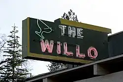The San Francisco Bay Guardian called the Willo a "roadhouse extraordinaire," and rated it as the 2nd best reason to "love Nevada City." They describe the Willo as "part redneck party in the rowdy bar, part retro dream with neon sign shining like a beacon from the dark..."[3] It has also been compared to a place that could be seen in the television program Twin Peaks.[4] The News & Review called the Willo one of the "few bastions of culinary Americana," and the reviewer acknowledges that they were surprised to see that they still serve Catalina dressing and that the martini glasses are smaller than most used today.[2] 7x7 calls it a dive bar and called the bartender "surly".[5]