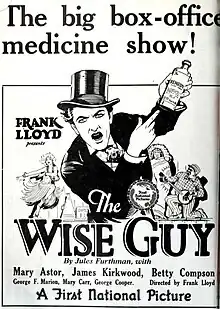 The Wise Guy is a 1926 American silent crime drama film produced and directed by Frank Lloyd and distributed through First National Pictures. Jules Furthman provided a screen story with scenario by Adela Rogers St. Johns. Mary Astor, James Kirkwood, and Betty Compson star.[1]
