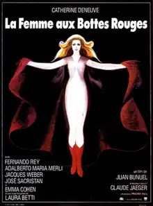 The Woman in Red Boots (French: La Femme aux bottes rouges; Italian: La ragazza con gli stivali rossi; Spanish: La mujer con botas rojas) is a 1974 fantasy comedy-drama film co-written and directed by Juan Luis Buñuel.[1][2] The film stars Catherine Deneuve as a beautiful young writer with the power to make her wishes reality whose life becomes entangled with the plots of the wealthy art patron Perrot, played by Fernando Rey. The film is highly surrealistic and tinged with a meta-narrative, with the characters roughly representing divisions of the art world: the raw creative power of young Françoise, the heroine who has nearly unlimited potential; the cynical manipulation and distant intellectualism of the elder Perrot; and the middle-aged Marc (Adalberto Maria Merli), trapped in the middle and forced to choose.[3]