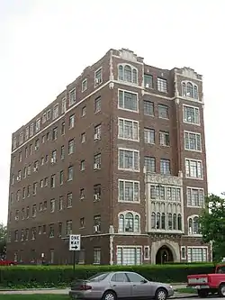 The Wyndham is a historic apartment building located at Indianapolis, Indiana. It was built in 1929, and is a seven-story, four bay wide, Tudor Revival style multicolor brick building. It features a recessed central entrance with pointed limestone arch, intricately detailed oriel window at the second and third floors, and a parapet with four blind trefoil arches.[2]:Part 3,p. 9–10