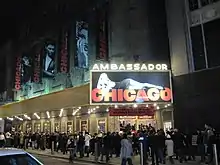 Chicago seen at night in 2010 at the Ambassador Theatre.