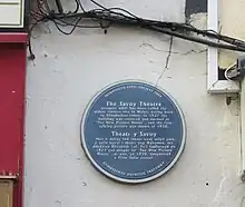 Savoy Theatre, Monmouth: "The Savoy Theatre occupies what has been called the oldest theatre site in Wales, dating back to Elizabethan times. In 1927 the building was restored and opened as 'The New Picture House', and the first talking picture was shown in 1930"