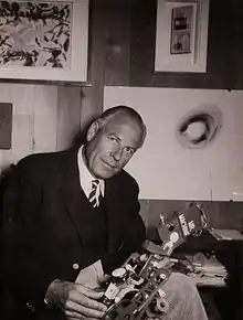 Ahrenberg also passionately supported his sometimes controversial fellow Swedish artists, including Carl Kylberg, Olle Bærtling, Einar Hylander, Öyvind Fahlström, Richard Mortensen, Robert Jacobsen and Carl Fredrik Reuterswärd. Another focus was artists from Eastern Europe whose practice was then limited by restrictive state policies behind the Iron Curtain, in particular Tadeusz Kantor (1915–90). Ahrenberg's outspoken support for such artists at this time only increased the tension between himself and the conservative art establishment.[8]