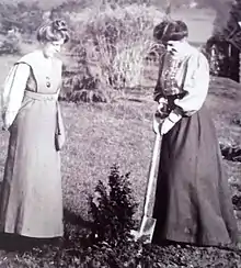 On 7 November 1909 she was invited to Eagle House at Batheaston in Somerset. Eagle House was known as "Suffragette's Rest" because of its support for the movement. It was the home of fellow suffragettes Mary Blathwayt and Emily, her mother. Emily had decided to plant a tree to commemorate every woman who went to prison for the cause. These trees came to be known as "Annie's Arboretum" after Annie Kenney, the local organiser. Garnett planted a Taxus baccata Elegantissima, and a lead plaque was installed to record the event. Emily's husband was a keen photographer and recorded the event.[8]