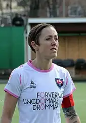 Kerstin Ingrid Therese Sjögran (born 8 April 1977) is a Swedish football manager and coach, and former player as a midfielder for Damallsvenskan club FC Rosengård and the Sweden national team. A modern pioneer and source of inspiration in women's football,[7][8][9] she is considered one of the greatest Swedish footballers of all time[10][11][8][12][9][13] and imagined by some as a possible future head coach for the national team.[14] Nicknamed "Terre",[15][11][16] Sjögran made her first Damallsvenskan appearances for Kristianstad/Wä DFF. She joined Malmö FF Dam in 2001 and remained with the club through its different guises as LdB FC and FC Rosengård. Sjögran spent the 2011 season with American Women's Professional Soccer (WPS) club Sky Blue FC.