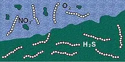 - ↑ Schulz, H.N., Brinkhoff, T., Ferdelman, T.G., Marine, M.H., Teske, A., Jorgensen, B.B. "Dense populations of a giant sulfur bacterium in Namibian shelf sediments." Science (1999) 284:493-495.