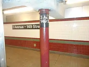 The Third Avenue–149th Street station is a station on the IRT White Plains Road Line of the New York City Subway. It is located at Third Avenue and East 149th Street (the latter of which is also known as Eugenio Maria de Hostos Boulevard) in the Hub in the South Bronx adjacent to Mott Haven and Melrose. The station is served by the 2 train at all times and the 5 train at all times except nights. The station is the second-busiest in the Bronx and 59th overall, with around 6.768 million passengers using the station as of 2019.[3]