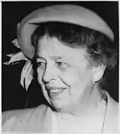 Eleanor remained politically active after her husband's death, serving as the first United States Representative to the United Nations and chairing the United Nations Commission on Human Rights when the Universal Declaration of Human Rights was drafted. She later chaired John F. Kennedy's Presidential Commission on the Status of Women before her death in 1962. The American National Biography concludes that she was "perhaps the most influential American woman of the twentieth century".[1]