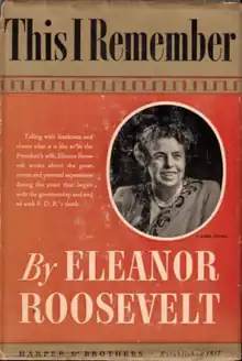 This I Remember is a 1949 memoir by Eleanor Roosevelt, an American political figure, diplomat, activist and First Lady of the United States while her husband, Franklin D. Roosevelt, was President of the United States. This I Remember was one of four memoirs written by Roosevelt, the other three being: This Is My Story, On My Own, and The Autobiography of Eleanor Roosevelt. It was received well by critics and was a commercial success.