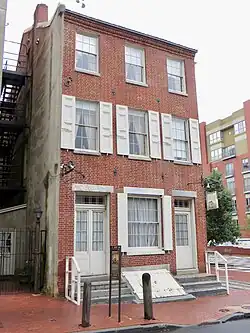 The house was listed on the Philadelphia Register of Historic Places in 1968 and is within the Old City Historic District, a district on the National Register of Historic Places.[2][3][4][5] It is part of Independence National Historical Park and is 3 blocks east of Independence Hall.[6] The main entrance faces south towards Welcome Park, the former location of William Penn's Slate Roof House.