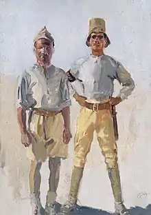 Dugdale was born in Blackburn in Lancashire and attended Manchester Grammar School.[1] He initially studied art at the Manchester School of Art before continuing his studies at the Royal College of Art.[2] He also studied at the City and Guilds of London Art School and in Paris at the Academie Julian and the Académie Colarossi.[3][4] Dugdale first exhibited at the Royal Academy in 1901 and continued to do so until 1952.[5] In 1910 he enlisted in the British Army and during World War One, Dugdale served as a Staff Sergeant in the Middlesex Yeomanry in Egypt, Palestine and Gallipoli.[6] While on active service Dugdale continued to paint and four of these pieces were acquired by the British War Memorials Committee. A selection of Dugdale's paintings from Palestine and Egypt were shown at the Leicester Galleries in London in April 1919.[7] The Witt Library has a number of political cartoons by Dugdale, possibly dating from around 1914 but it is unclear if, or where, they were intended for publication.[8]