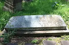 He is buried in Warriston Cemetery in north Edinburgh. The grave lies on a slope next to the steps at the east end of the vaults next to the grave of James Young Simpson.