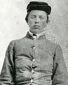 Jefferson was shot in the stomach. When two cadets ran to assist him, he told them to carry on fighting, "you can do me no good."[6] He died three days later, in the bed at the home of Lydie Clinedinst, after he was found by Moses Ezekiel wounded and laying in a farmhouse.[7][8] Ezekiel (who was Jewish) read from John 14 by his bedside. He is buried below the statue of Virginia Mourning Her Dead sculpted by Ezekiel.[9]