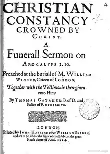 - ↑ "Thomas Gataker (GTKR593T)". A Cambridge Alumni Database. University of Cambridge.