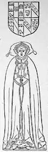 • Jane Grenville, married Sir John Arundell (1470–1512) of Trerice in Cornwall, Sheriff of Cornwall and Vice Admiral of the West to King Henry VII and to his son King Henry VIII.[16] An escutcheon showing the arms of Arundell impaling Grenville survives on the monumental brass in Stratton Church, Cornwall, of her son Sir John Arundell (1495–1561), of Trerice,[17] known as Jack of Tilbury, an Esquire of the Body to King Henry VIII and Vice-Admiral of the West.