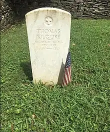 Kilgore returned to his settlement in the spring of 1779, along with a few other families, and then built a fort which would be known as Kilgore Station.[6] Thomas Kilgore died in 1823 at the age of 108 after he became drenched and caught a chill during a trip to Gallatin, Tennessee.[7] Kilgore was buried at Villines Cemetery in Cross Plains.[8] In 2007, Kilgore Park, named for Thomas, opened in Cross Plains.