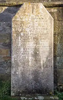 Stanley died on 26 Aug 1670 at Eyam.[9] A plaque was erected in the village detailing his life.[10]