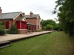 After the line was closed and the tracks lifted, it was purchased by the two local authorities whose areas it passed through, meaning that the line through Thorpe Thewles came under the control of Cleveland County Council who converted it into the Castle Eden Walkway cycle path (now part of the Wynyard Woodland Park). The station master's house at Thorpe Thewles became a field centre in 1983.[2] Since then the remaining station buildings have been brought back into use and the site now houses a visitor centre,[3] café,[4] gift shop and farm shop.[3]