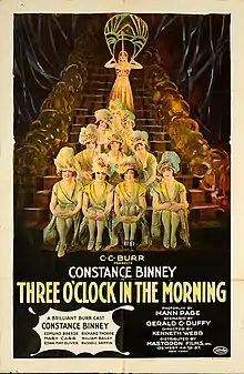 Three O'Clock in the Morning is a 1923 American silent drama film directed by Kenneth S. Webb and starring Constance Binney, Edmund Breese, and Richard Thorpe.[1] It is now considered to be a lost film.