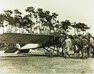 Despite this, a dedicated single-seat fighter version was built in 1915, armed with an 8 mm Hotchkiss machine gun that fired through the propeller arc, the propeller blades being protected by deflector plates.[12] Only one or two prototypes were built, and the type never entered service.[13]