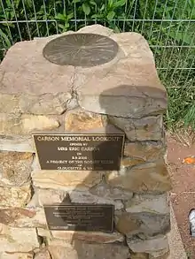 Eric Carson (1913–99), a Gloucester sawmiller and road builder, carved the first road through the ranges to bring out the magnificent hardwood from the forests on the Great Divide. After Carson spent many years trying to persuade local politicians that a road should be built across the Divide from Gloucester to Nowendoc, he went ahead and built it. Carving the 32 km (20 mi) route out of some of the steepest and most rugged countryside in the state was fraught with danger, but by 1961 it was complete.[7] Carson's Lookout, which commemorates his work is between Gloucester and Nowendoc, is a stop off point for the enjoyment of panoramic views.